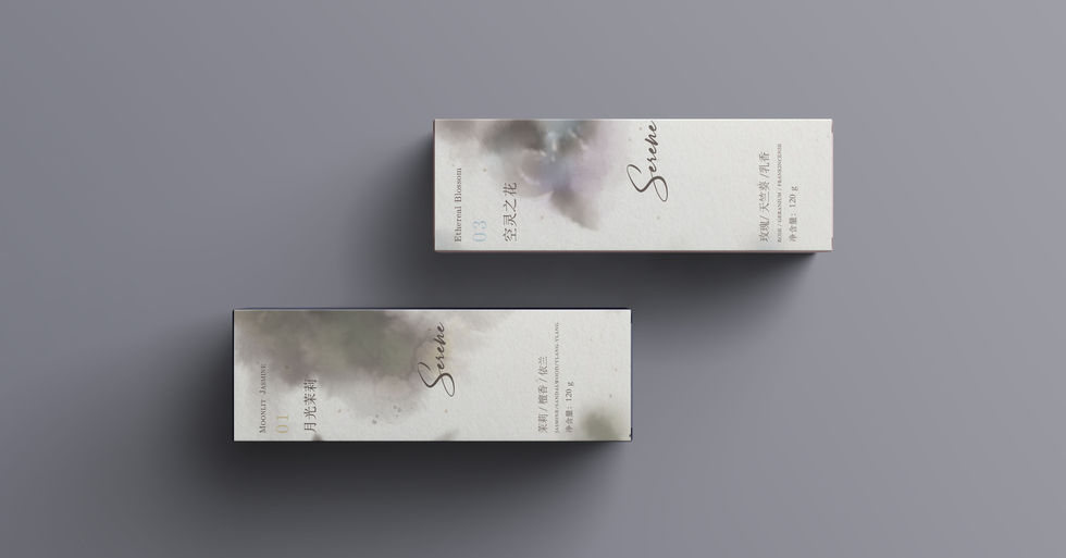 This project involves designing a packaging box for the aromatherapy brand Serene. Centered around their brand concept "Embrace Tranquility," I drew inspiration from the calming essence of scented stones. To convey this sense of serenity, I incorporated a harmonious blend of colors and ink textures into the design. Each color was carefully chosen to reflect the unique aroma of the corresponding aromatherapy scent, ensuring a cohesive sensory experience. The flowing patterns mimic the gentle, rhythmic movement of breath, creating a visual effect that evokes relaxation and calmness. This natural breathing effect aims to enhance the overall sensory experience, aligning with the brand's commitment to promoting tranquility and well-being. The result is a packaging design that not only captures the essence of Serene's aromatherapy products but also offers a visually soothing experience for the consumer.